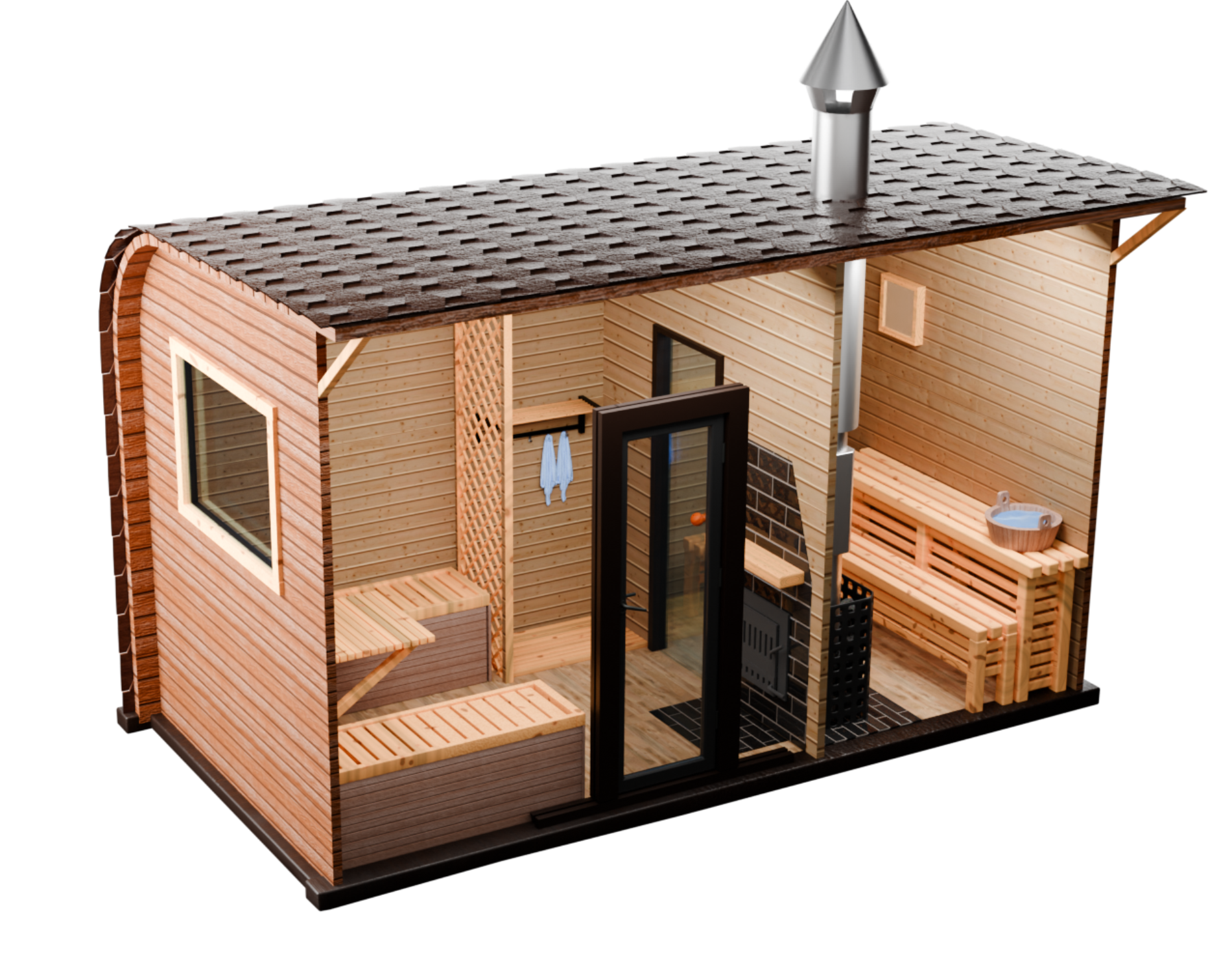 Возможны изменения внутренних размеров парилки, комнаты отдыха.
